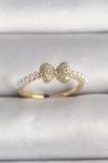 Skygo Pirinç Gold Renk Zirkon Taşlı Fiyonk İnci Detay Ayarlanabilir Yüzük