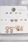Reka Moda Pirinç Gold Renk Zirkon Taşlı Kalp Beyaz Mineli Fiyonk Figür 7 Çift Kadın Küpe Seti