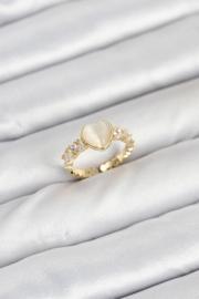 Tahtakale Toptancı Pirinç Gold Renk Zirkon Taşlı Kalpli Kadın Yüzük