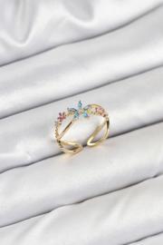 Tahtakale Toptancı Pirinç Gold Renk Zirkon Taşlı Mavi Çiçekli Kadın Yüzük