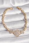 Butik Pirinç Gold Renk Zirkon Taşlı Yonca Model Zincir Kadın Bileklik