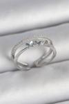 Özel Seri Çift Görünüm Zikzak Model Zirkon Taşlı Ayarlanabilir Kadın Tasarım Çelik Yüzük - Image 1