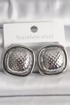 Callerrons Accessories Pirinç Gümüş Renk İşlemeli Kare Model Kadın Küpe - EBJ250207W31194