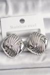 Pirinç Gümüş Renk İşlemeli Kare Model Kadın Küpe - TJ-BKP10156