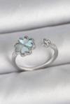 Pirinç Gümüş Renk Mavi Mineli Yonca Model Zirkon Taş Detay Ayarlanabilir Kadın Yüzük