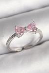 Pirinç Gümüş Renk Pembe Zirkon Taşlı Kalp Fiyonk Model Kadın Yüzük