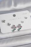 Herşeyburdamoda Pirinç Gümüş Renk Renkli Zirkon Taşlı Çiçek Yaprak Detay 925 Ayar Gümüş Çivi Kadın Küpe Seti