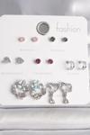 Ftt Pirinç Gümüş Renk Renkli Zirkon Taşlı Daire Çiçek Figür Sallantı Kalp Detay 7 Çift Kadın Küpe Seti