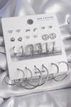 Skygo Pirinç Gümüş Renk Zirkon Taşlı 12 Çift Kadın Küpe Seti