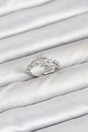 Tahtakale Toptancı Pirinç Gümüş Renk Zirkon Taşlı Kelebek Model Kadın Yüzük