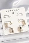 Pirinç Renk Zirkon Taş Yıldız Detaylı İncili 7'Li Set Kadın Küpe Seti