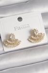 Herşeyburdamoda Pirinç Renk Zirkon Taşlı Yelpaze Kadın Küpe