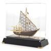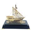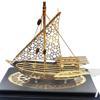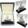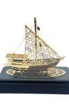Pirinç Yelkenli Gemi Altın Kaplama Katar Dhow Teknesi Deri Kutulu 23cm No.2