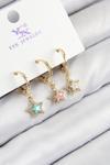 Callerrons Accessories Pirinç Zirkon Taşlı 3'lü Renkli Yıldız Model Gold Renk Kadın Küpe - EBJ250816W37359