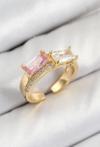 Pirinç Zirkon Taşlı Dikdörtgen Model Gold Renk Kadın Yüzük