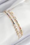 Bu bileklik, pirinç zirkon taşları ve inci modeli ile dikkat çekiyor.