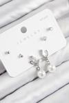 Stil Love Pirinç Zirkon Taşlı İnci Sallantılı Damla Model Gümüş Renk 925 Ayar Gümüş Çivi Kadın Küpe Set