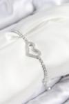 Pirinç Zirkon Taşlı Kalp Model Gümüş Renk Asansörlü Kadın Bileklik