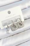 Callerrons Accessories Pirinç Zirkon Taşlı Kare Model Gümüş Renk 3'lü Çift Kadın Küpe Set - EBJ250705W36189