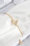 Pirinç Zirkon Taşlı Kelebek Model Gold Renk Asansörlü Kadın Bileklik