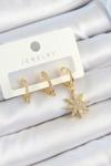 Pirinç Zirkon Taşlı Kutup Yıldızı Model Gold Renk 3'lü Çift Kadın Küpe Set