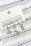 Pirinç Zirkon Taşlı Sallantılı Yıldız Model Gümüş Renk 3'lü Çift Kadın Küpe Set - EBJ250705W36175 - Image 1