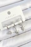 Pirinç Zirkon Taşlı Kutup Yıldızı Model Gümüş Renk 3'lü Çift Kadın Küpe Set