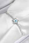 Pirinç Zirkon Taşlı Nazar Yıldız Model Gümüş Renk Asansörlü Kadın Bileklik