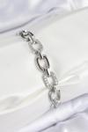 Pirinç Zirkon Taşlı Parçalı Zincir Model Gümüş Renk Kadın Bileklik