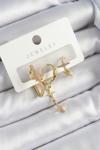 Stil Love Pirinç Zirkon Taşlı Yıldız Model Gold Renk 3'lü Çift Kadın Küpe Set