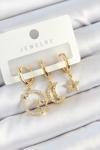 Pirinç Zirkon Taşlı Yıldız Ve Ay Model Gold Renk 3'lü Kadın Küpe Set