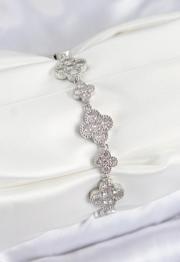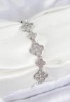 Tahtakale Toptancı Pirinç Zirkon Taşlı Yonca Model Gümüş Renk VIP Seri Kadın Bileklik