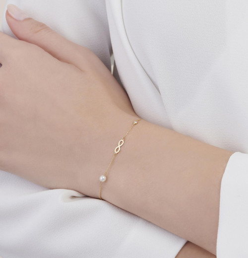 Her ortamda şıklığınızı ve özgün tarzınızı ortaya koyabileceğiniz özel pırlanta incili sonsuzluk bileklik modeli kombinlerinize eşsiz bir duruş kazandırıyor. Modern bir görünüm elde edebileceğiniz pırlanta incili bileklik modeli modaya uyumlu bir şekilde giyinebilmenizi kolaylaştırıyor.