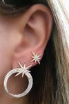 Pırlanta ışıltısında kutup yıldızı figürlü zirkon taşlı gümüş lüks tekli kombin küpe