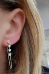 Pırlanta Işıltısında Zirkon Taşlı 925ayar Gümüş Tek Zincir Küpe