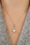 Pırlanta Işıltısında Zirkon Taşlı 925ayar Gümüş Zarif İnci Kolye