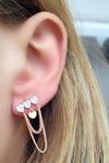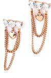 Ose Shop Pırlanta Parlaklığında Zirkon Taşlı Gümüş Üzerine Rose Altın Kaplama Kalp Figürlü Zincir Detaylı Trend Küpe