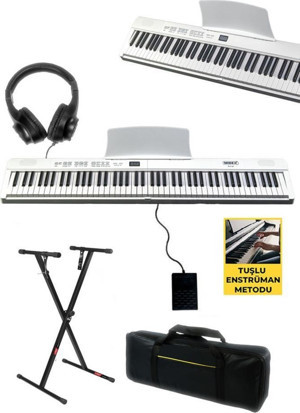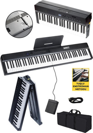 PLX-80WHST Taşınabilir Katlanır Dijital Piyano Tuş Hassasiyetli 88 Tuş BT (Stand Sustain Kulaklık Çanta Metod)