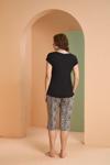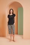 Pjs 27038 Kadın Leopar Desenli Yuvarlak Yaka Kısa Kollu Rahat Kapri Pijama Takım