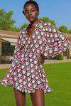 Ersefa Plaj Elbisesi Pamuklu Geometrik Desenli Mini V Yaka Trend Tasarım Rahat Ve Şık Dayanıklı Malzeme