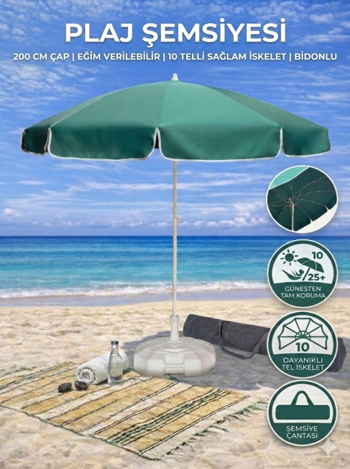 Plaj Şemsiyesi 20lt. Bidonlu Taşıma Çantası Hediyeli(Koyu Yeşil)