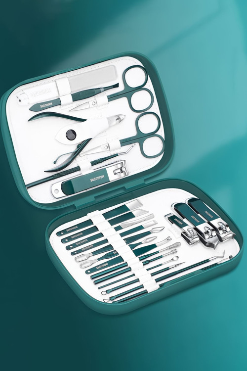 Tırnak ve cilt bakımına önem verenler için gerekli gereçleri içeren setimiz şık bir tasarımla sizlere sunulmaktadır. Manikür, pedikür, kaş düzeltme, anti-akne, peeling için kullanılabilir. Aletler %100 paslanmaz cerrahi çelikten üretilmiştir. Böylece güvenli sterilizasyon sağlar, kolay temizlenir, uzun ömürlüdür, korozyonu önler ve enfeksiyon riskini en aza indirir. Kutu boyutları: 16 cm x 11,2 cm x 3 cm. Ağırlık: 330 gr.
