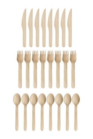 24 Parça Doğa Dostu Ahşap Çatal Bıçak Kaşık Seti