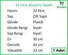 - 22 litre hacim