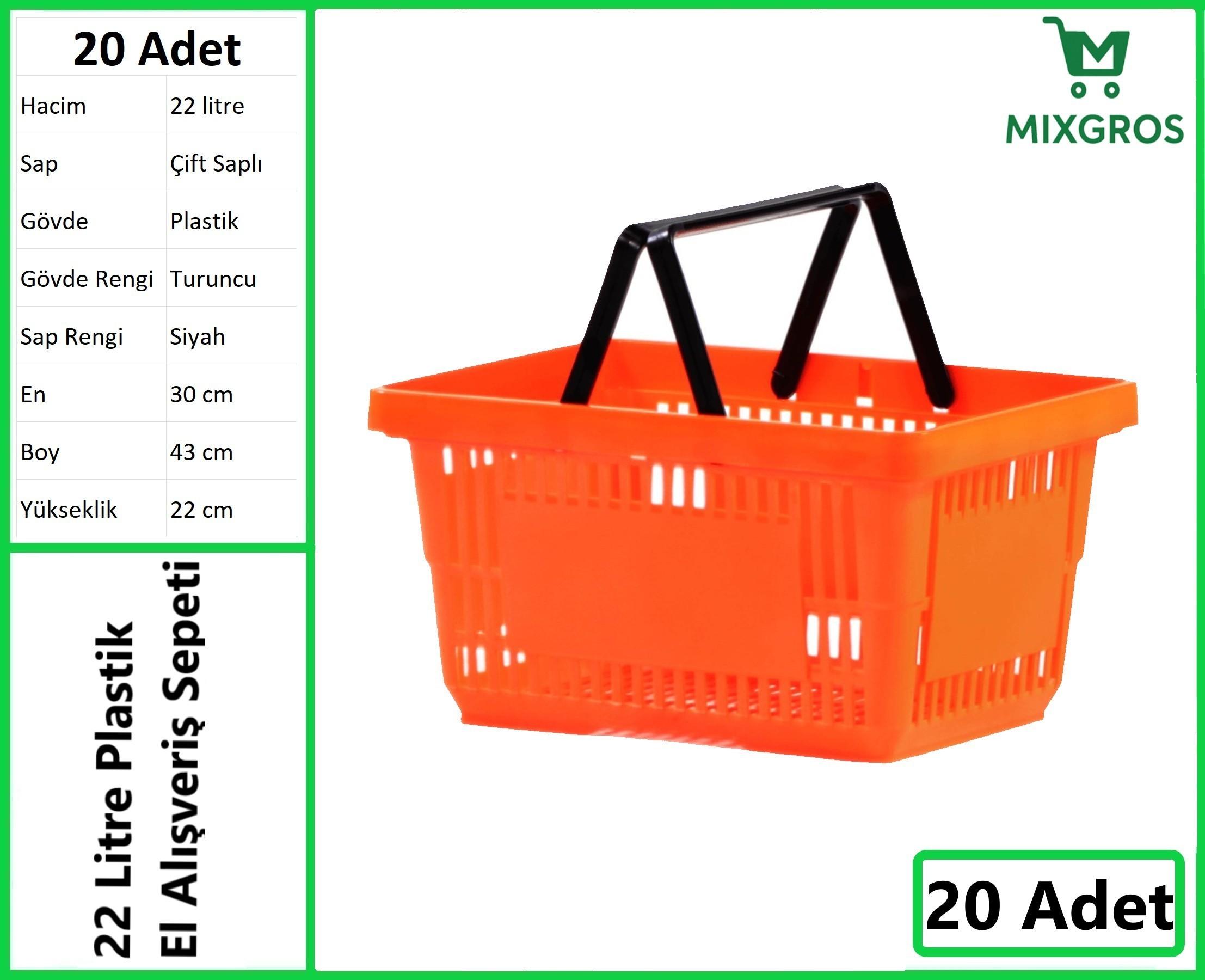 Dayanıklı, Estetik ve Uzun Ömürlü 22 Litre Plastik Alışveriş El Sepeti! Market ve süpermarket tarzı işletmeler, gün içinde dolaşımın fazla olduğu, hareketli mekanlardır. Dolayısıyla müşteriler için bazen hızlı hareket etmek ve alışverişi pratik bir şekilde tamamlamak önemli olabilir. Mixgros'un bu gibi işletmeler için özel olarak sunduğu, 22 litrelik kapasiteye sahip ve sadece 0,61 kilogram ağırlığında olan plastik el sepeti, mağazanızı ziyaret eden müşterilerinize son derece pratik bir kullanım sunacak.