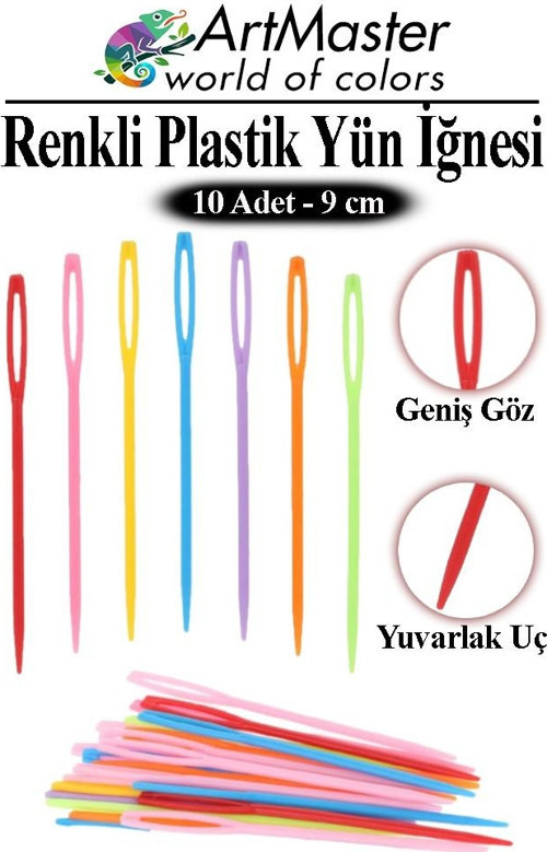 Ürün Adı: Artmaster Plastik Yün İğnesi Renkli 40 Adet 9 cm Dikiş İğnesi Plastik İğne İplik İğnesi Dokuma İğnesi Örgü Dikme Dikiş