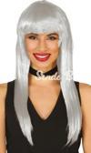Platin Gri Gümüş Renk Uzun Parti Peruğu Uzun Takma Peruk