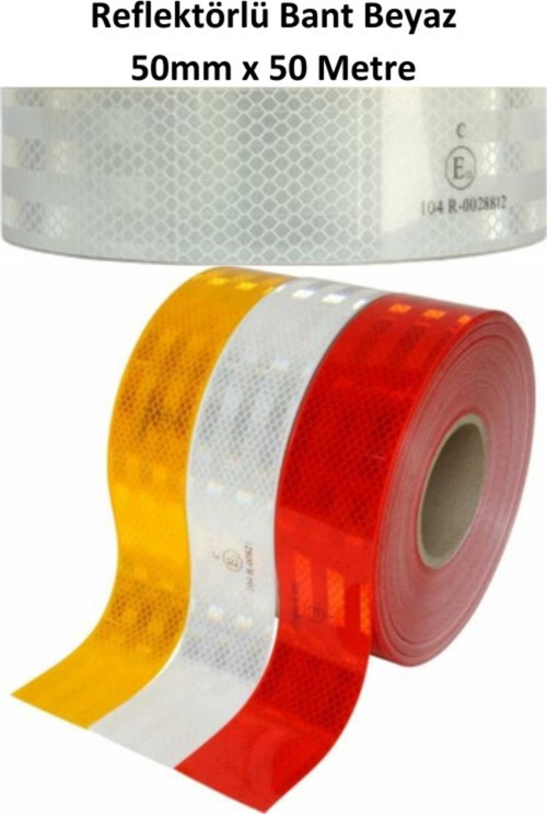 Tüvtürk Onaylı Reflektörlü Fosforlu Şerit Bant Reflek Ikaz Bandı Beyaz 50mm x 50 Metre 1 Top Ebatlar : Bant Eni: 50 mm Et Kalınlığı: 0.38 mm.