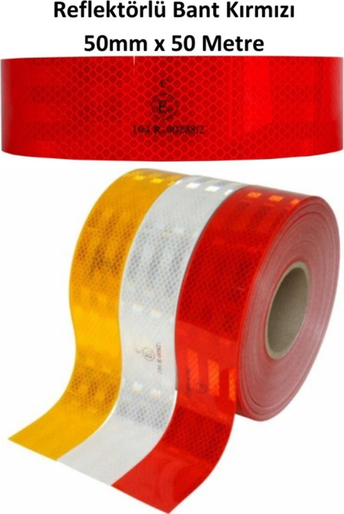 Tüvtürk Onaylı Reflektörlü Fosforlu Şerit Bant Reflek Ikaz Bandı Kırmızı 50mm x 50 Metre 1 Top Ebatlar : Bant Eni: 50 mm Et Kalınlığı: 0.38 mm.