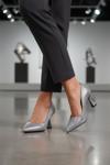 İnce ve parlak topuk detayıyla dikkat çekicidir.